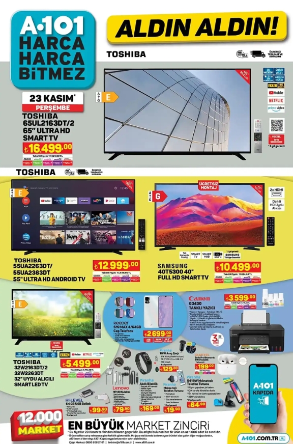 - Toshiba 55″ Ultra HD Android TV – 12.999 TL