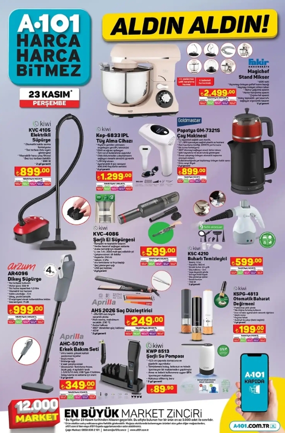 A101 marketleri tarafından duyurulan yeni kataloglar birçok kişi tarafından sürekli olarak takip ediliyor. 30 Kasım 2023 Perşembe günü geçerli olacak indirimler de yine birçok müşteri tarafından merak ediliyor. Yeni kataloğu görüntülemek isteyen vatandaşlar internet üzerinden araştırma yapıyor. Her perşembe A101’in yayınladığı aktüel ürünlerde teknolojiden gıdaya küçük ev aletlerinden mutfak ürünlerine birçok kategoride ürün bulunuyor. İşte yeni katalog;