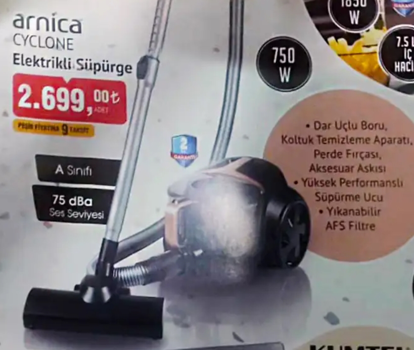 750 W gücünde olan Arnica Cyclone elektrikli süpürge düşük ses seviyesiyle de dikkat çekiyor. Elektrikli süpürgeye ihtiyacı olan kişiler BİM şubeleri üzerinden 2 bin 699 TL’ye ürüne sahip olabilecek. Birçok şubede satılacak olan ürün için kişiler ürünü kullandıktan sonra yapılan yorumları da merak ediyor. İşte Arnica Cyclone elektrikli süpürgenin kullanıcı yorumları ve özellikleri..