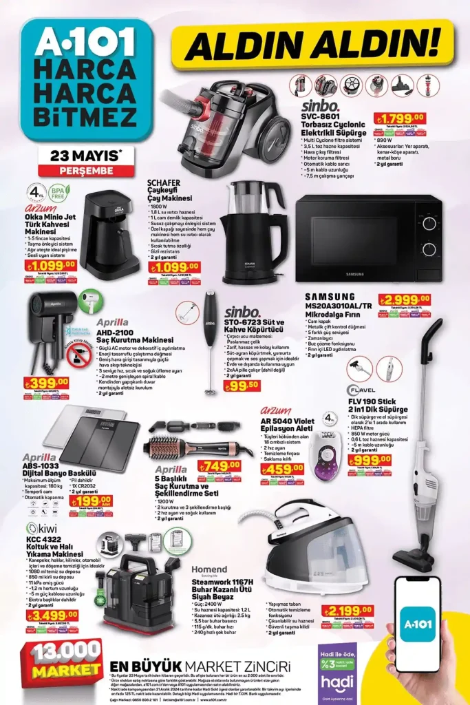 A101 market zincirleri bomba nitelikteki aktüel ürünler kataloğunu duyurdu. Her şubede satışa çıkartılmak üzere SCHAFER marka çaykeyfi çay makinesini 1.099 TL’den satışa çıkardı. Dileyen vatandaşlar; Axess, bonus, maximum, World, bankakartlara özel 9 taksitle de bu ürünü satın alabilecek. SCHAFER çaykeyfi çay makinesi 9 taksitli fiyatı ise 1.237 TL olarak belirlendi.