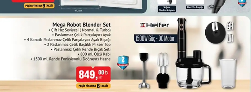Büyük zincir marketler tarafından satışa çıkartılan elektronik ürünler çok uygun fiyatlara müşterilerle buluşuyor. Zincir marketlerin sunduğu ürünler vatandaşların ilgisini çekerken, ürünün kullanıcı yorumları ve özellikleri merak ediliyor. BİM’de satışa sunulacak olan Heifer Mega Robot Blender Set, birçok kişinin ilgisini çekerken kişiler blender setinin özelliklerini ve kullanıcı yorumlarını merak ediyor.. Evi için blender set arayan kişiler markanın kaliteli olup olmadığını ve parasını karşılayıp karşılamadığını araştırmaya başladı.