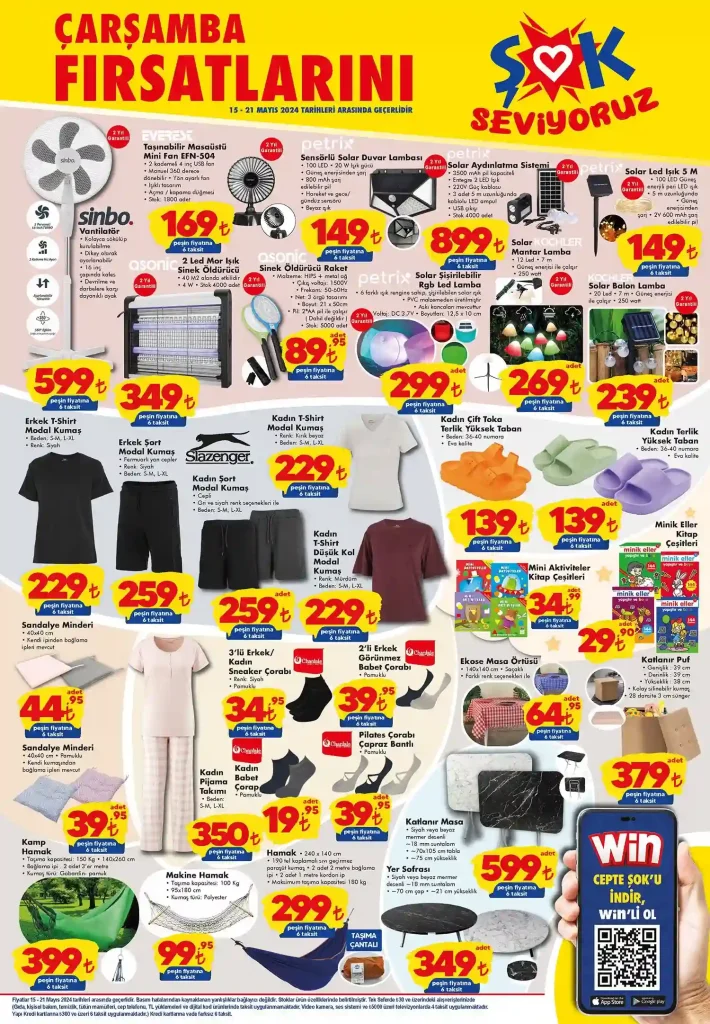 Şok marketlerden yüzünüzü güldürecek yepyeni bir aktüel ürünler kataloğu duyuruldu. Şok 15 Mayıs 2024 aktüel ürünler kataloğu sayesinde kamp ürünlerinden kitap çeşitlerine, terlikten masa örtüsüne kadar bir çok ürün indirimli şekilde satışta. Hafta boyunca geçerli olacak aktüel ürünler kataloğu tüm Şok market şubelerinde geçerli. Sizler de en yakın Şok market şubesine giderek ihtiyacınız olan ürünleri ucuz ve kaliteli şekilde alabilirsiniz. Bu aktüel ürünler kataloğunun stoklarla sınırlı olduğunu sakın unutmayın! İşte Şok 15 Mayıs 2024 aktüel ürünler…