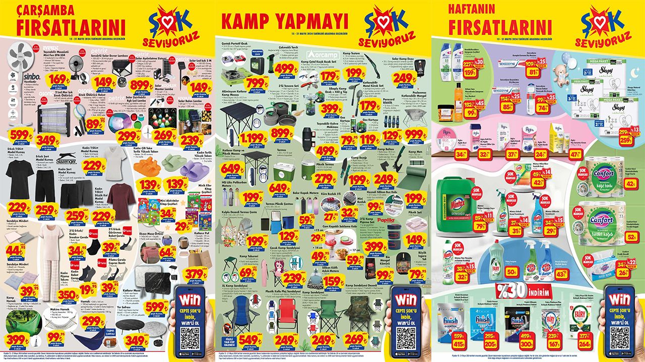 Uygun fiyatlarla kamp ürünleri alışverişi yapmak isteyen vatandaşlarla, Şok Marketler’den son dakika aktüel ürünler kataloğu duyuruldu. Pek çok kamp ürününü en uygun fiyattan satışa çıkartan Şok Marketler 15 Mayıs 2024 aktüel kataloğunda yok yok! Hem ucuz hem de kaliteli kamp ürünleri almak isteyen vatandaşlar en yakın şok market şubesine koşacak. Kamp ürünlerinin yanı sıra temel gıda, hijyen ve evinizin diğer ihtiyaçlarında da uygun fiyatlar Şok marketlerde sizleri bekliyor. İşte Şok 15 Mayıs 2014 aktüel kataloğu…
