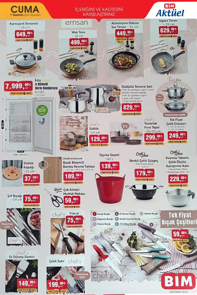 Türkiye’nin önde gelen perakende zincirlerinden biri olan BİM yaz aylarına özel indirimlerle dolu yeni aktüel kataloğunu yayınladı. Bu hafta özellikle derin dondurucular ve bisikletler gibi yaz ürünleri dikkat çekiyor.